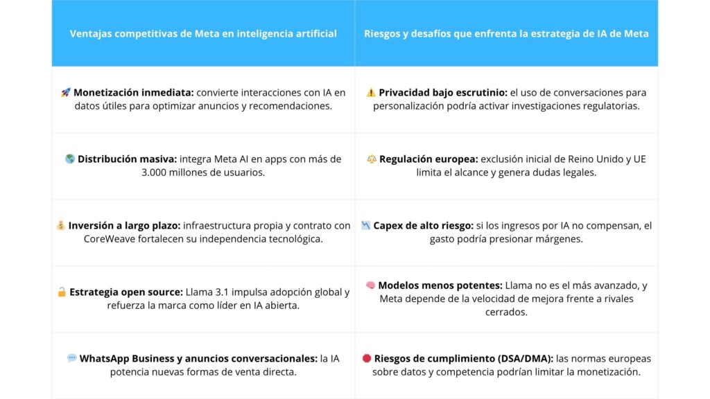 En pocas palabras, Meta no vende inteligencia artificial: la distribuye para escalar su ecosistema.